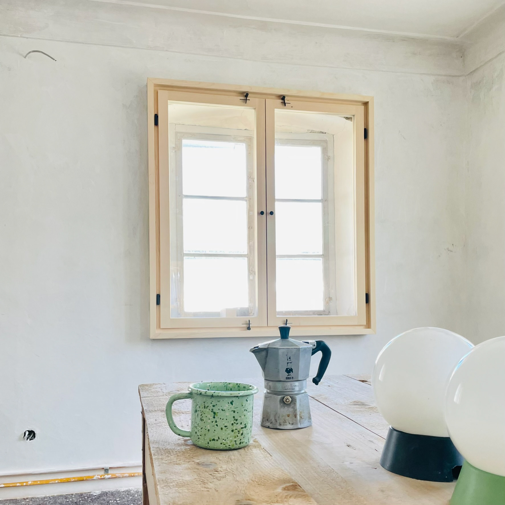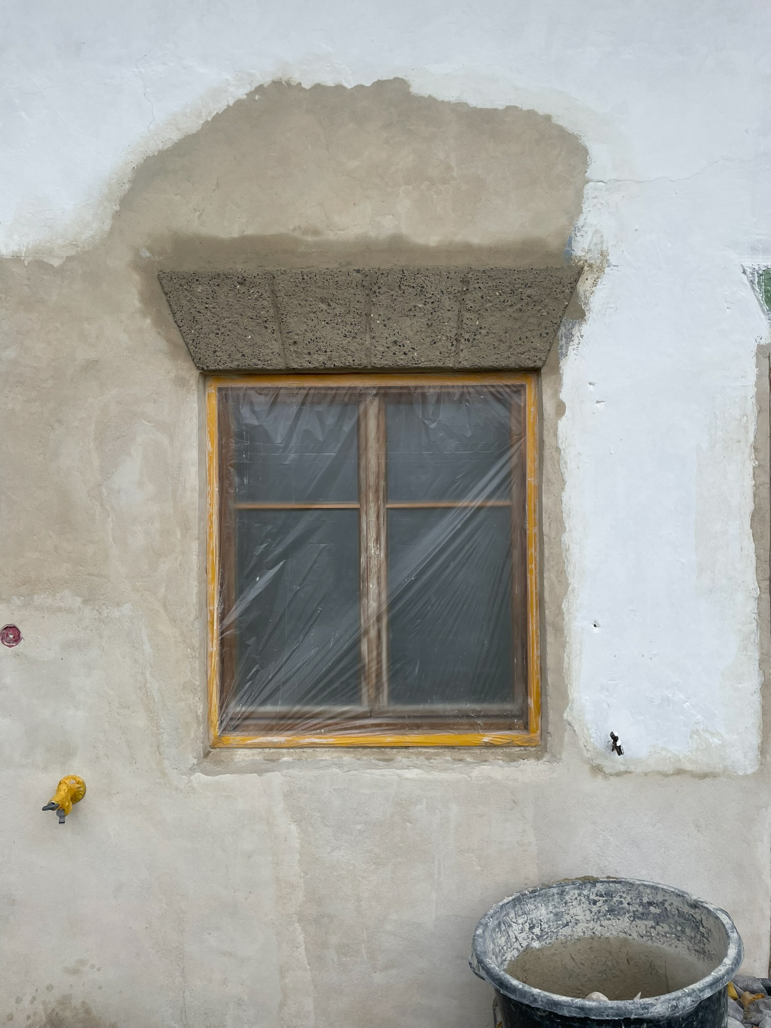 Bei den Baustoffen wurde Wert auf einfache, natürliche Materialien gelegt. Sämtliche Mörtel, egal ob zum Mauern, Verputzen oder für den Sichtestrich, wurden mit Kalk und Sand selbst hergestellt.