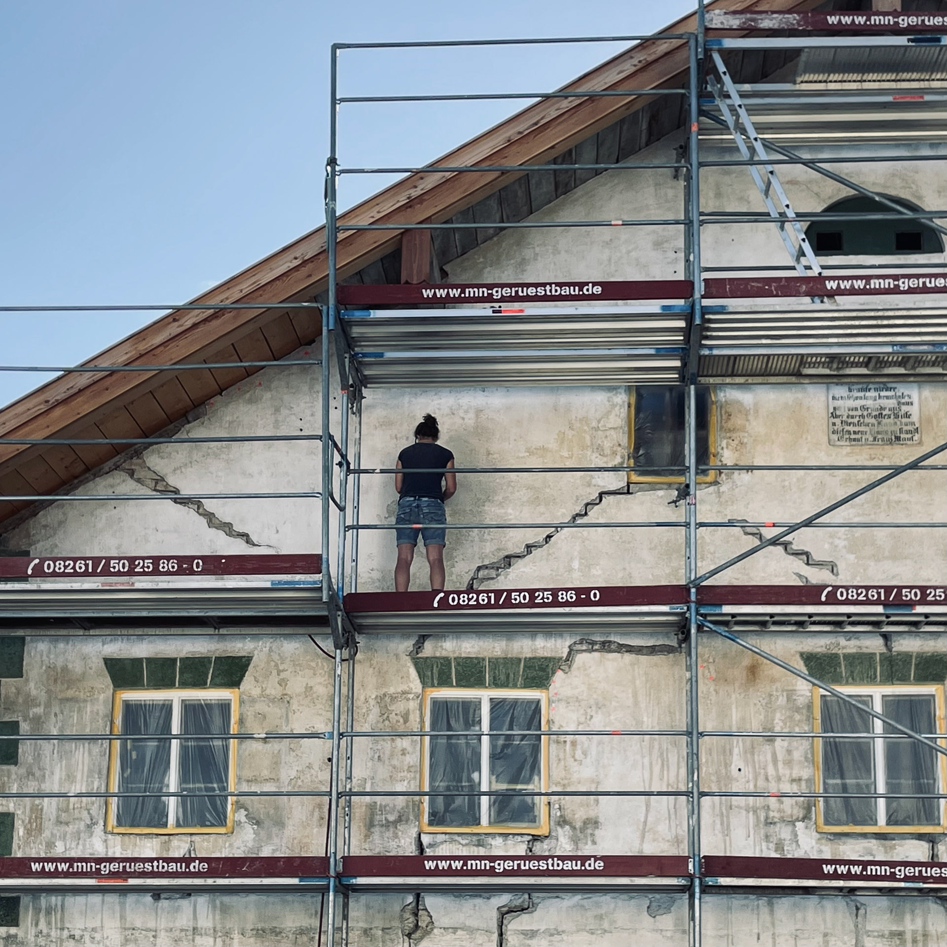 So steht es auf der Inschrifttafel am Giebel des denkmalgeschützten Bauernhauses geschrieben, als wir es in der Denkmalbörse des Bayerischen Landesamtes für Denkmalpflege entdecken. Historisch ein Einfirsthof mit Tenne, zweigeschossig mit mittelsteilem Satteldach, Putzgliederung und Sterntüren, 50 Jahre lang unbewohnt.